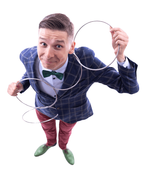 Nie potrzebujesz niczego specjalnego. Wszystko, co niezbędne do sztuczek zawartych w kursie, z łatwością znajdziesz w domu – np. sznurówkę, szczoteczkę do zębów czy gumkę recepturkę.